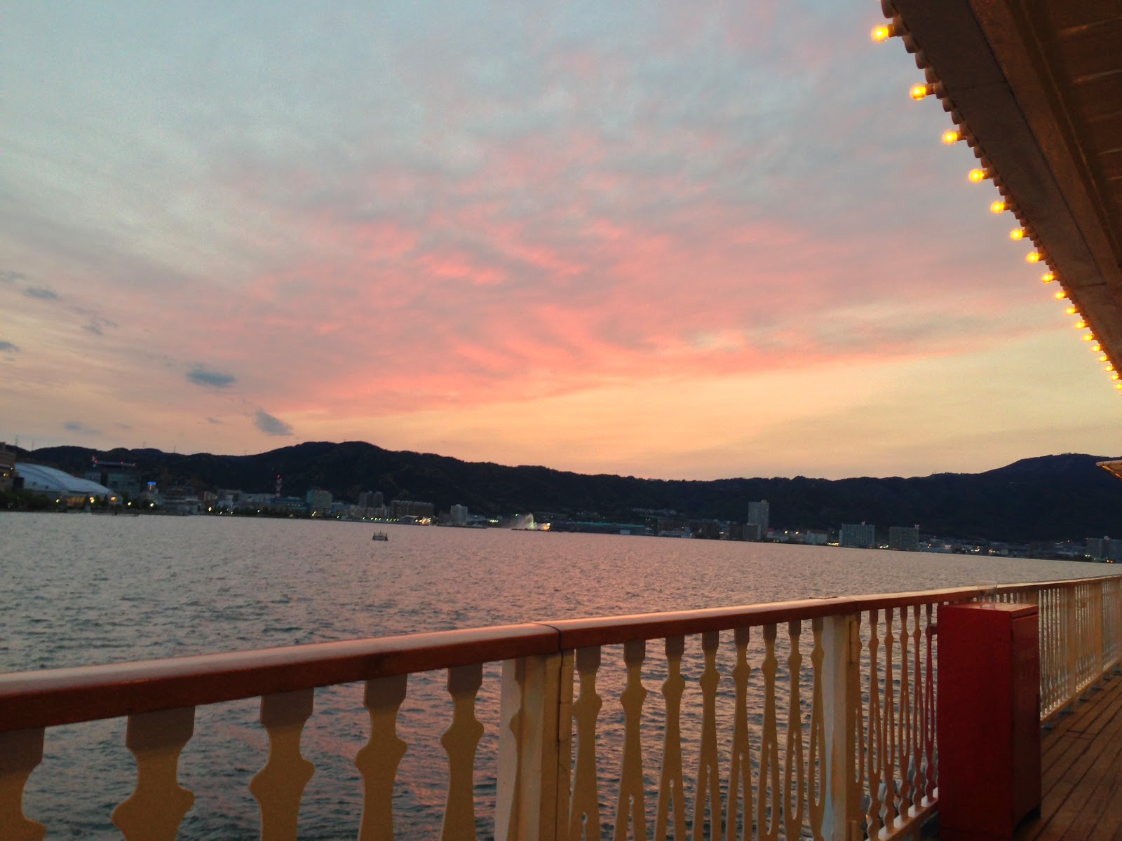 Just this past Saturday, AJET Block 6 held its last event of the JET year (it ends in June), a cruise on Lake Biwa aboard the Michigan. Like the hanami party at Osaka Castle, there was a great turnout of JETs—again over 100 of us attended and set sail in the evening. As is customary at AJET events, there was lots of socializing and drinking. In fact, the vast majority had decided to pre-game before the cruise and boarded with a pretty heavy buzz, which only made the experience that much more hilarious. We got to watch the sunset while on the water before nighttime fell and the city lights lit up the coast. I got to reconnect with a few friends I hadn’t seen in a while, so I had a great time!