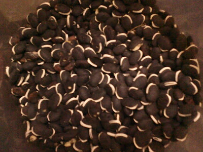 What the heck are these, you must be asking. I asked myself the same thing when I saw them in the town market 3 weeks ago. They were the most exotic bean I had ever seen, and strangely, I couldn’t figure out what kind they were, even after searching extensively on the internet. The word I got in the market was fiwi, which according to Baba Malaika (our handy Swahili-to-English dictionary) is a lima bean. Clearly incorrect, as lima beans don’t come in a black or dark-blue variety. I was lost until my friend Carol turned me to the other book we got during Pre-Service Training, pointing to an appendix with a list of words for plants and their produce (funny it would have a whole column for plant names, since they’re all basically the name of the produce with an “m” on the beginning, e.g. chungwa is the word for orange and mchungwa is the orange tree). In Simplified Swahili, the translation given is the Bonavist bean.